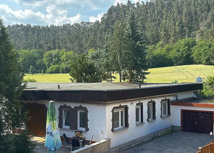 Villa Zur Teufelsmauer à Vorwerk Helsungen est situé à environ 25 minutes de marche du mur du Diable et vous invite à profiter d'une terrasse.